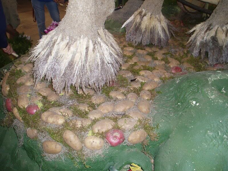 Interesting float fact-- the "stones" around the feet of Charlie the Endor Unicorn-Goat-Thing are actually potatoes, nailed right into the float! Too awesome.