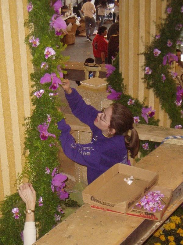 I had signed up for the 9-5 float decorating shift at the warehouse in Azusa, which meant I had to start out from SD at 7 am. Blech. But I made it safely there and found